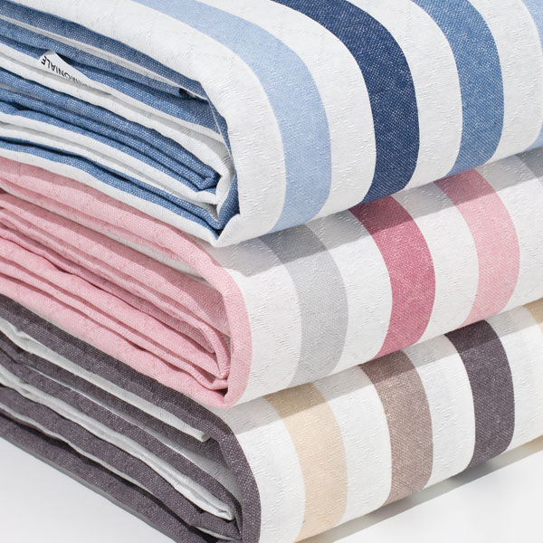 Copriletto Boutis Trapuntato mano seta® “Frida” – Righe/Rosa Malva