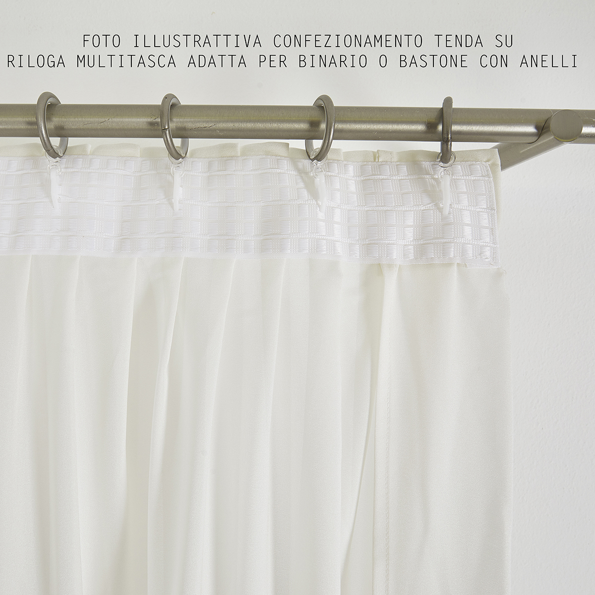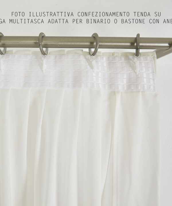 Si consiglia di acquistare il doppio del tessuto della tenda finita in larghezza “misura bastone o binario” per una buona riuscita dell’ arricciatura