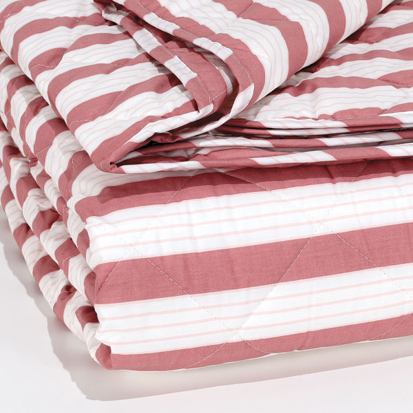 Copriletto Boutis Trapuntato mano seta® “Frida” – Righe/Rosa Malva
